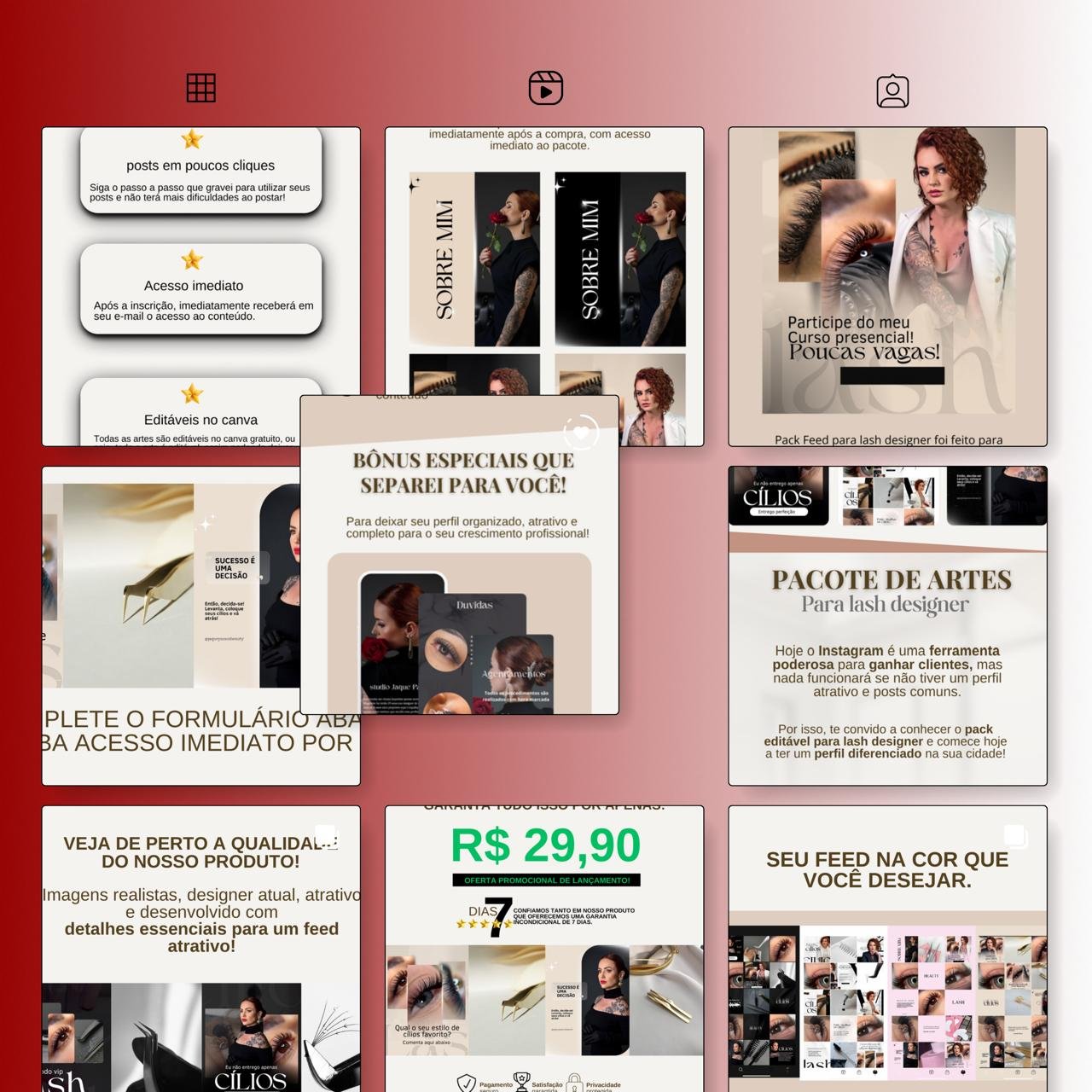 Packs de artes são pacotes de posts prontos de designs criados no Canva, e essas artes são personalizadas para um público, ou seja, eu eles ajudam empreendedoras a terem um perfil profissional e mais atrativo.
